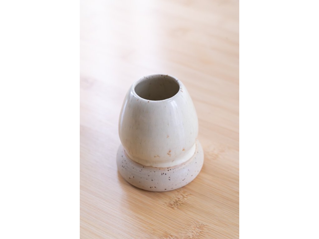 Česká keramika ruční výroby – miska a stojánek na chasen. Každý kus je originál, vzniklý z poctivé ruční práce. Keramika byla navržena tak, aby byla nejen maximálně funkční, ale zároveň zaujala svým minimalistickým a nadčasovým designem.